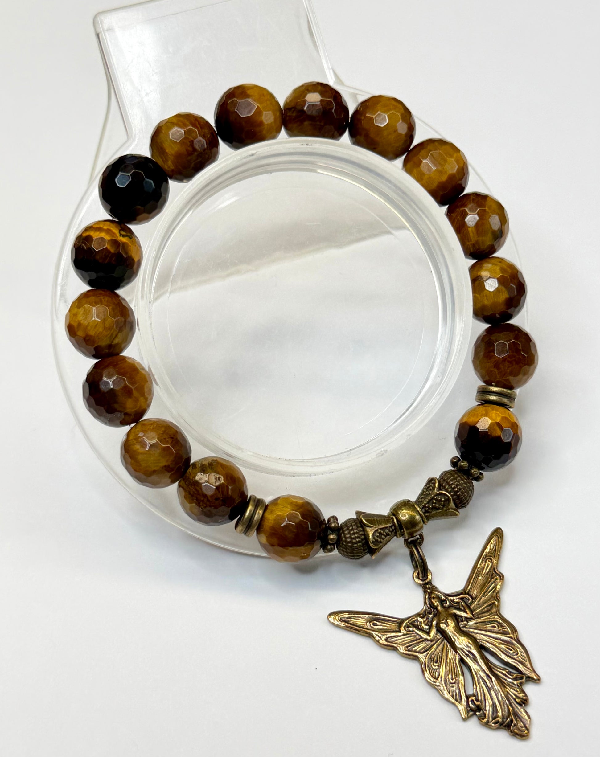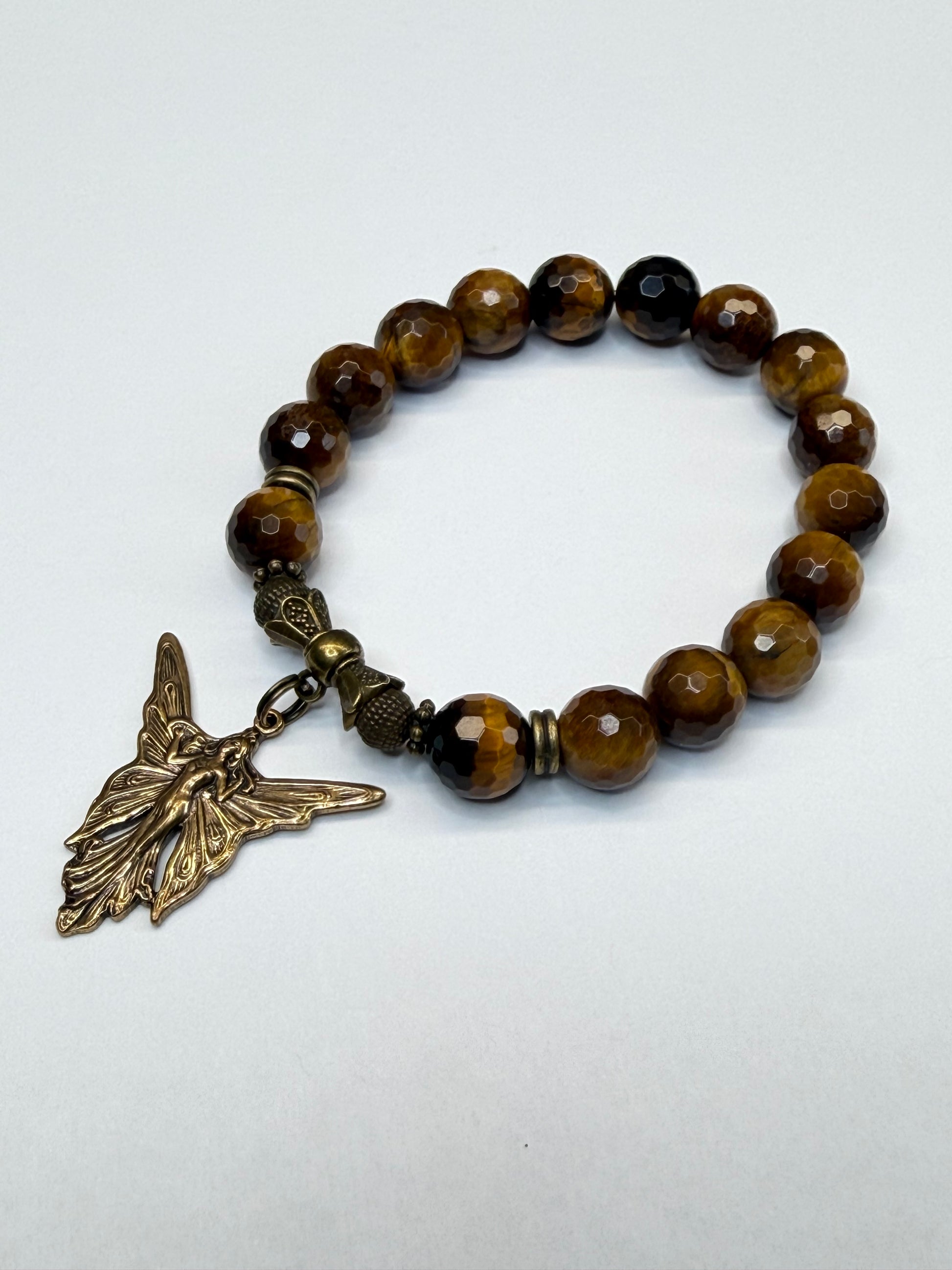 10mm Faceted Tiger’s Eye with Angel Charm